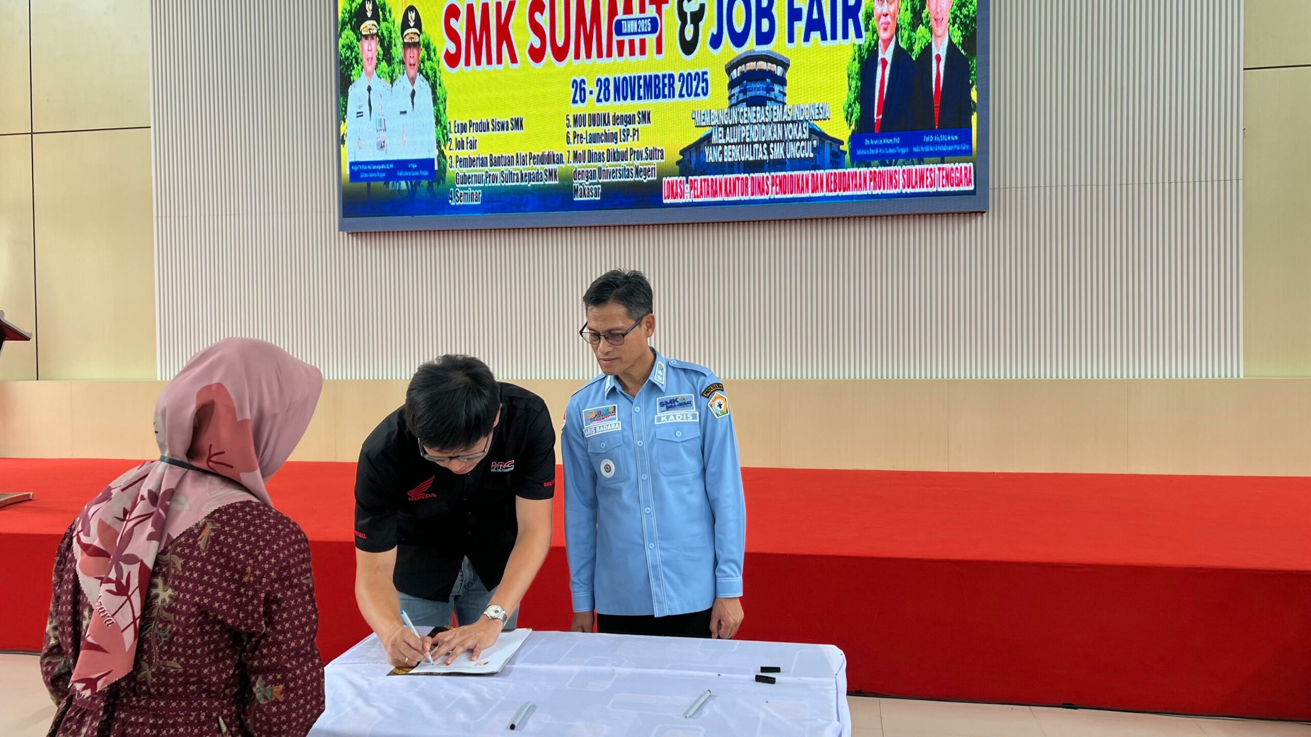 Penandatanganan MoU berlangsung di Pelataran Kantor Dinas Pendidikan dan Kebudayaan Provinsi Sulawesi Tenggara, Kamis (27/11/2025) dan menjadi bagian dari agenda SMK Summit & Job Fair yang digelar selama 26–28 November 2025.